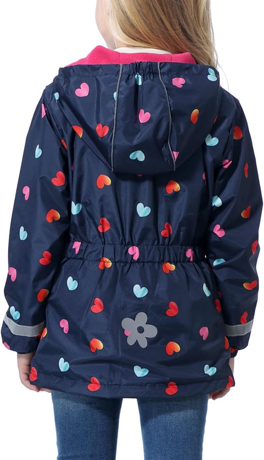 Kids Rain Jacket Lightweight Waterproof Windbreaker Winter Warm Fleece Lined Hooded Raincoat for Girls Coat Navy Blue Heart 11-12 Years
